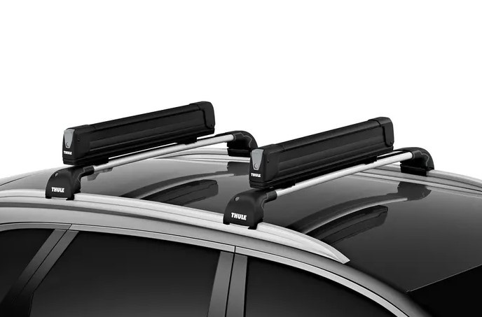 Лыжи крепятся на багажнике, а багажник — на машине при помощи системы Thule One-Key (замки входят в комплект поставки)