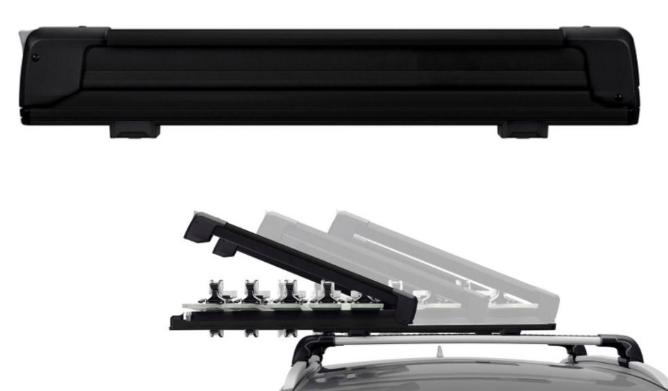 Выдвигается в сторону для легкой погрузки и разгрузки без необходимости тянуться к крыше автомобиляБагажник для крыши подходит для всех типов лыж и сноубордов