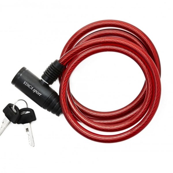 Замок противоугонный VINCA SPORT 8х1200 мм, с тросом, красный