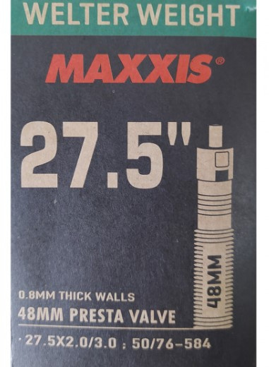 Велокамера Maxxis Welter Weight предназначены для агрессивных гонщиков, для которых очень важна долговечность камеры. Эти камеры среднего веса предназначены для всех дисциплин езды.Особенности: