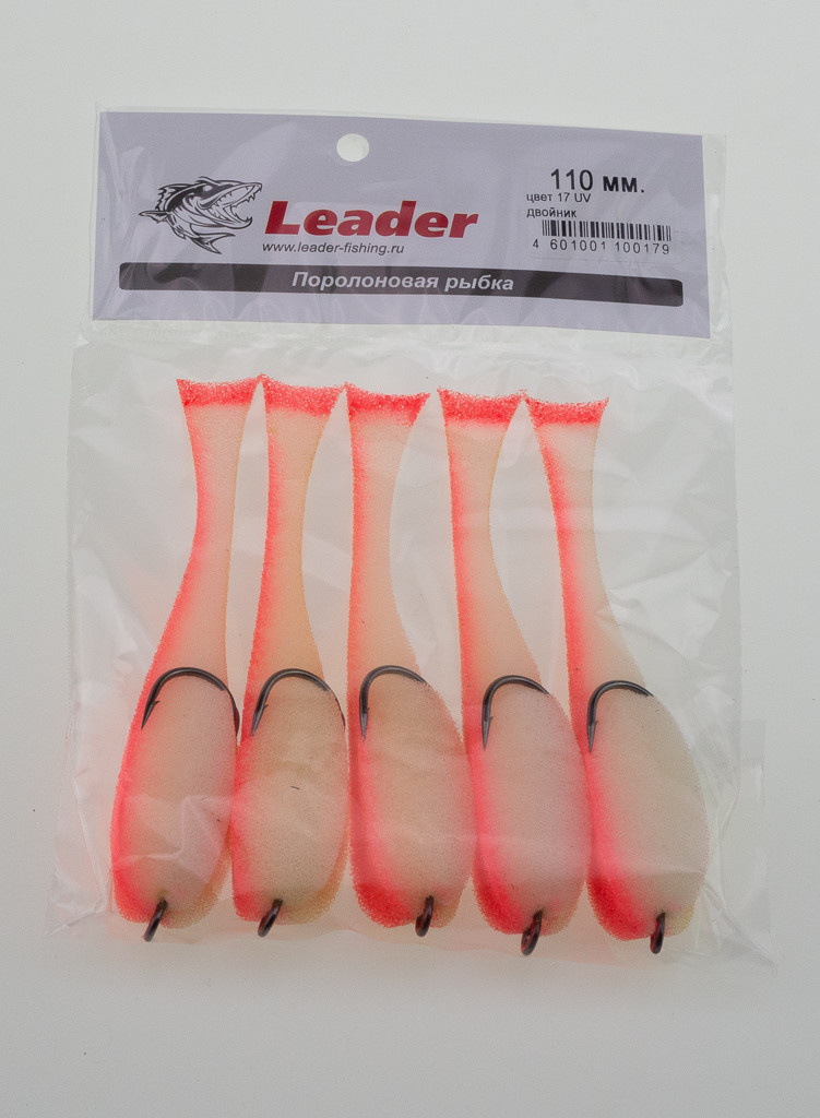 Поролоновая рыбка Leader на двойнике 110мм цв.17 UV уп.5шт