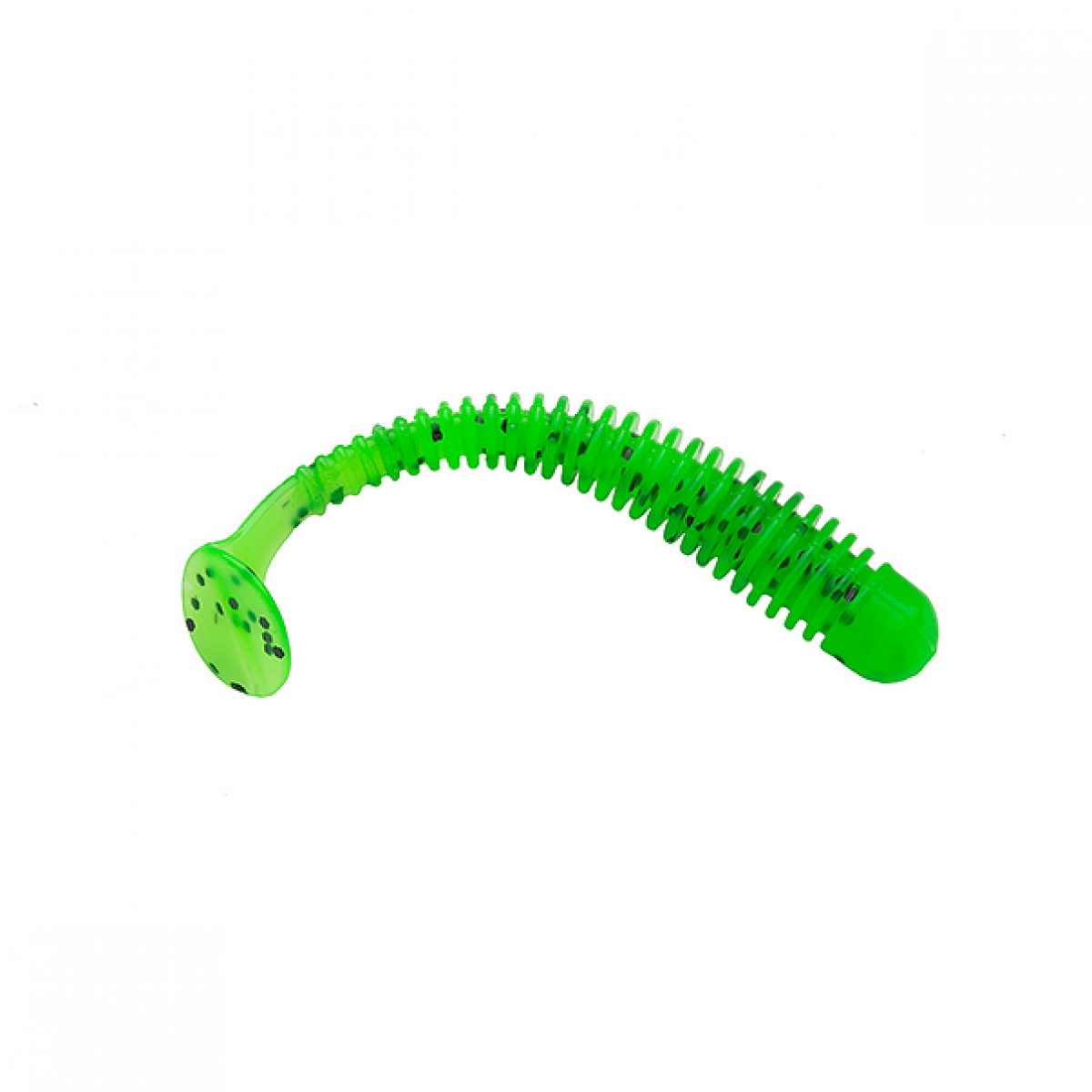 Червеобразное тело с множеством ребер, сплюстнутое в горизонтальной плоскости для удобства использования ее на офсетном крючке, оканчивается среднего размера пяткой в виде овала. Имеет очень стабильную и привлекательную для рыбы игру на малых весах, а ребристое тело начинает извиваться при малейшем движении спиннинга.Как купить