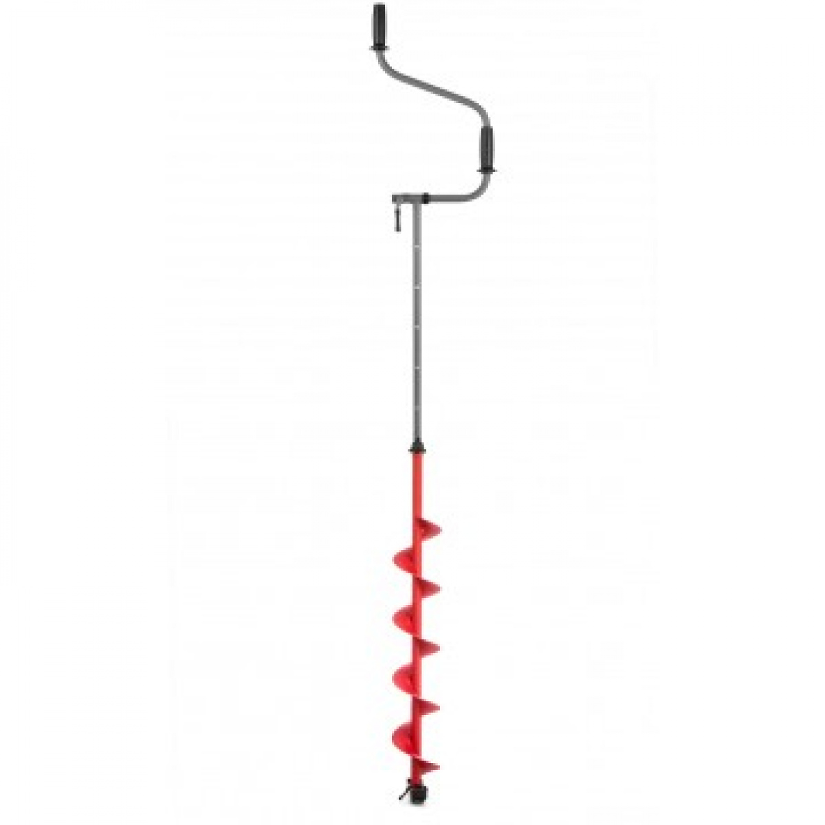 Телескопическая вставка-удлинитель при помощи фиксированных отверстий выдвижения позволяет отрегулировать высоту ледобура под толщину льда и рост рыболова. Максимальная глубина бурения достигает практически до 1,50 м.