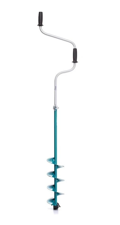 Одноручный ледобур уже почти не используется рыболовами. На смену им пришел более быстрый «двуручный». Верхняя рукоятка Ледобура ЛР-150Д смещена относительно оси шнека на 130 мм, а нижняя на 150 мм. Скорость бурения сразу возрастает, а нагрузка равномерно распределяется на две руки и становится незаметной. Поскольку ход бура при таком бурении более плавный (без рывков) нет эффекта «закусывания» при прохождении нижней кромки льда.Складная ручка уменьшила транспортировочные размеры ледобура до 83 см. Запатентованный замок помогает быстро привести бур в рабочее положение, а так же не дает люфта при использовании. Ледобур легко справляется с бурением метрового льда не смотря на малый размер в сложенном виде. Если вы живете в районах, где глубина льда два и более метра то эта модель вам тоже подойдет. Глубину бурения можно увеличить добавив удлинители УД-400 или УД-250. В зависимости на какую глубину вам нужно увеличить, удлинители могут собираться в любой последовательности между собой и крепится к буру. Возмож