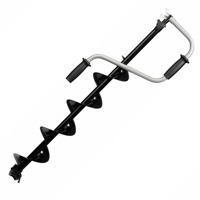 Верхняя рукоятка ледобура смещена относительно оси ледобура на 101 мм, а нижняя на 170 мм. Такое расположение рукояток позволяет вращать ледобур одновременно двумя руками, тем самым увеличивая скорость бурения лунок во льду. Телескопическая вставка-удлинитель комфортно бурить лед, подстраивая ледобур под рост рыболова. Возможно ступенчато увеличивать глубину бурения до полутора метров.