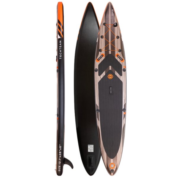 Сапборд TechTeam Spin - скоростная модель повышенной грузоподьемности c полной комплектацией.Имеет "скоростную" геометрию, позволяющую быстро разгоняться, сохранять высокую скорость и маневрировать. Длина почти в четыре метра делает его более устойчивым и позволяет перевозить пассажиров общим весом до 150 кг. При изготовлении использован новый ПВХ-материал высокой плотности, на 35% легче аналогов.