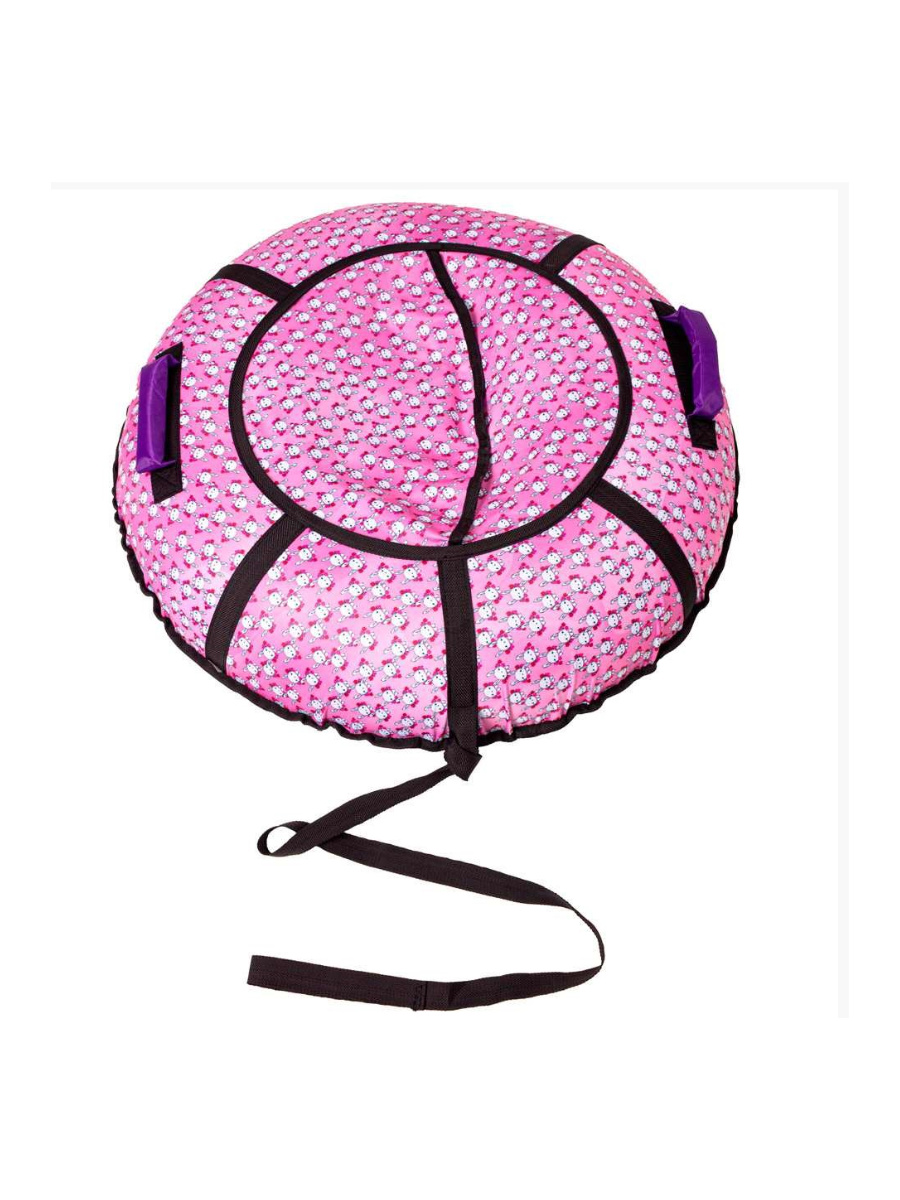 - Верх тюбинга выполнен из плотной ткани Оксфорд, покрытой ПВХ составом с внутренней стороны. На ткань нанесены весёлые рисунки, что повышает привлекательность данного вида продукции.